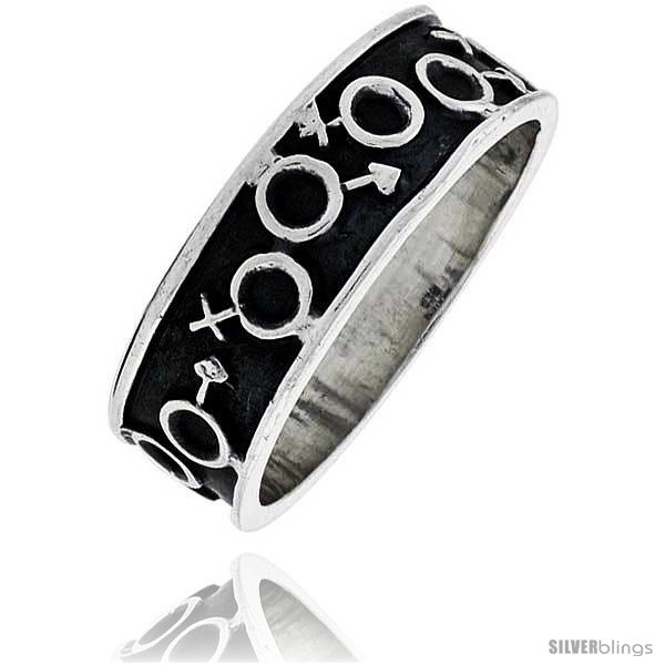 Sterling Silver Southwest Design Male & Female Symbols Ring 1/4 in wide