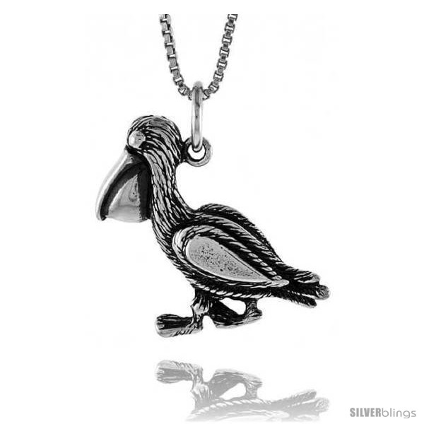 This distinctive Wings Pendant made with Sterling Silver is stylish and impressive. Sterling Silver Pelican Pendant, Nice Antiqued Finish, Very Well Made. It measures over 13/16" (21mm) Tall not including the bail. NO Chain Included