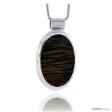 Sterling Silver Oval Slider Pendant, w/ Ancient Wood Inlay, 1" (26 mm) tall, w/ 18" Thin Snake Chain