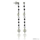Sterling Silver Black Swarovski Crystals & Pearls Drop Earrings, 2 7/8 in. (73 mm) tall