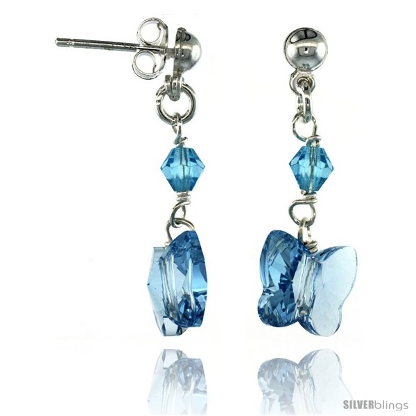 Sterling Silver Butterfly Blue Topaz Swarovski Crystals Dangle Earrings, 1 1/8 in. (29 mm) tall